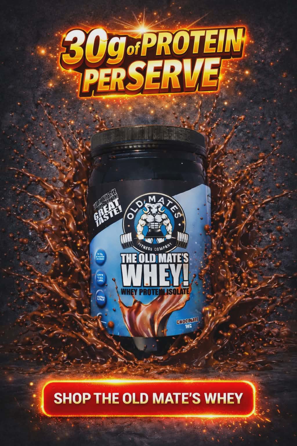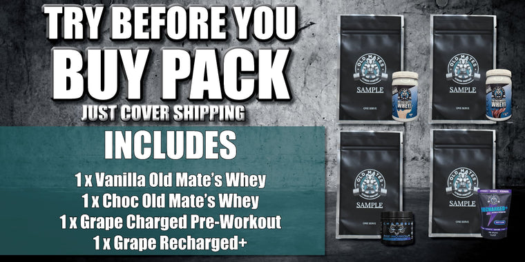 The Old Mate’s Whey - Whey Protein Isolate. Packs up to 30g of protein per serve, making them perfect for muscle growth and recovery. We also offer bundles like the Collagen Whey Pack if you want extra joint and skin support alongside your protein hit.